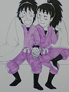 左の絵は、あまりの寒さに妄想してこさえた双忍の絵。
