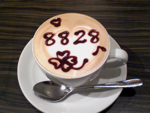 ここのマスターに、鹿はチョコフレーバーのカプチーノを淹れていただいたのですが、文字を書いてくださるということで、「8828」と書いていただきました。